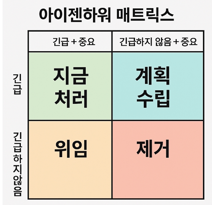 바쁜 하루 속에서도 정말 중요한 일에 집중하려면, 우선순위를 명확히 하는 도구가 필요합니다. 아이젠하워 매트릭스는 그 역할을 완벽히 해냅니다.